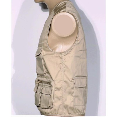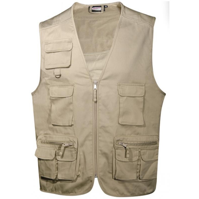 Γιλέκο υφασμάτινο με επένδυση και πολλές εργονομικές τσέπες. Μία άνω θήκη για κινητό και στυλό , μία άνω τσέπη βέλκρο , δύο τσέπες με φερμουάρ και δύο μεγάλες τσέπες κάτω βέλκρο. Λάστιχα στους ώμους για στεγανότητα από τον αέρα και μαύρα κουμπιά