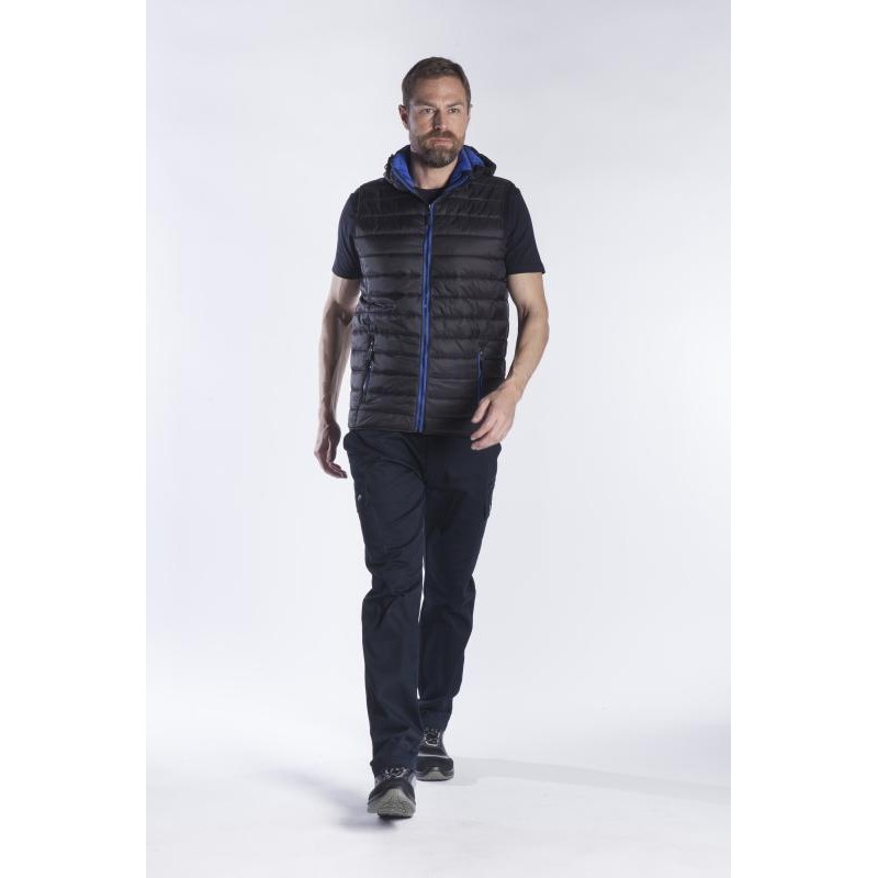 Γιλέκο με polyester στην μπροστινή πλευρά και Soft shell στο πλάι και σε όλη την πλάτη. Διαθέτει δύο τσέπες με φερμουάρ και στο επάνω μέρος του κεντρικού φερμουάρ έχει προστατευτικό πιγουνιού.