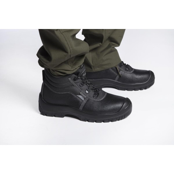 Αδιάβροχο δερμάτινο μποτάκι ασφαλείας S3 με συνθετική προστασία στα δάκτυλα και στην σόλα για μεγαλύτερη άνεση .
