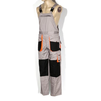 Φόρμα εργασίας με διχρωμία στις τιράντες και στα καπάκια στις τσέπες, με λειτουργικές τσέπες στο πλάι , πίσω και ψηλά στον μηρό καθώς και διπλή τσέπη στο στήθος μία ανοιχτή και μία με φερμουάρ.